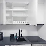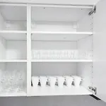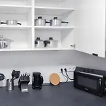 設備の整った台所で食事を作られます。 この宿泊はStuttgartZuffenhausen鉄道駅数歩の距離ほどのところにあります。